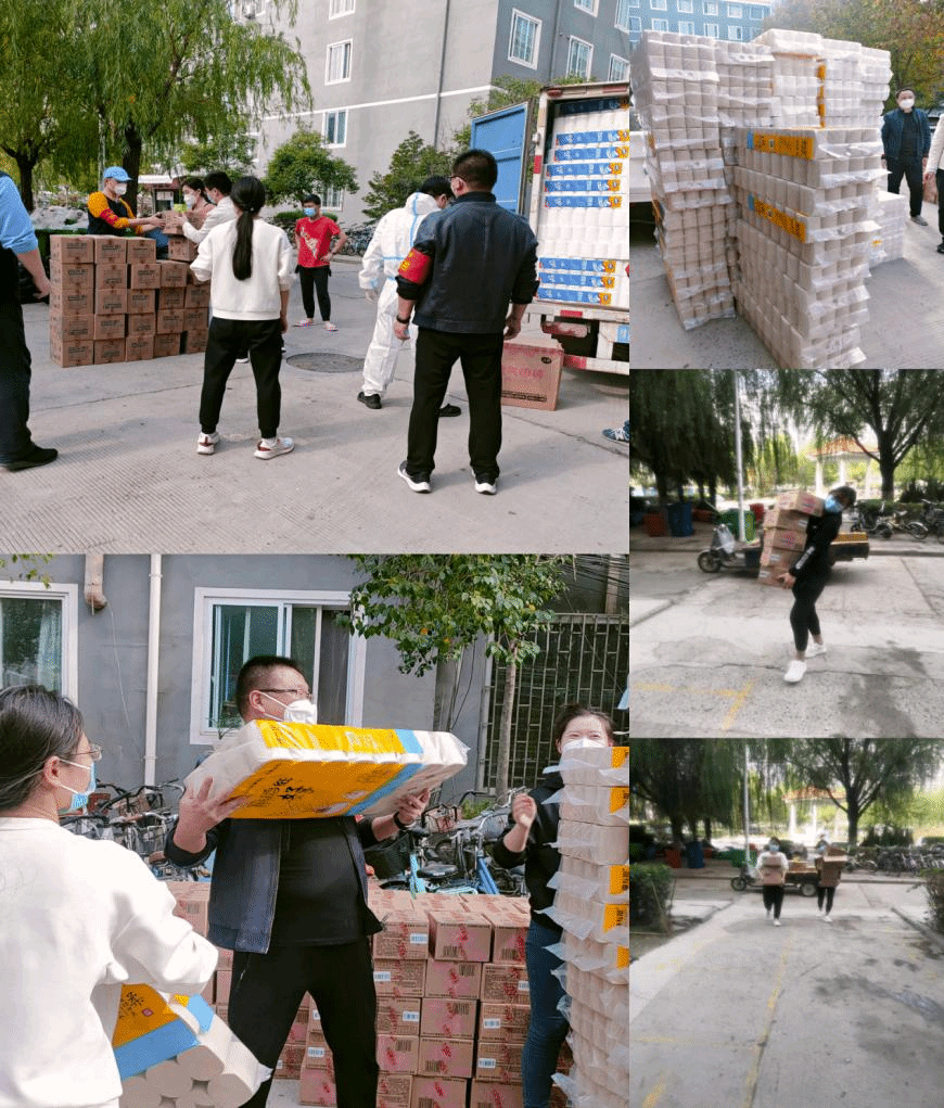 伴随着公寓园区大门的打开,满载物资的大卡车缓缓入园。一垛垛的手提卫生纸、一箱箱的水果和零食、一箱箱女生们急需的卫生巾……这些来之不易的物资都是老师们为大家排除万难找到的。由于运送物资的大型车辆不能直接开到宿舍楼下,老师们的战线就从楼下拉长到了园区内。原本手执三寸粉笔的老师此时用肩扛、手提、端抱等方式把一箱箱的物资送到学生宿舍。老师们常说的一句话是,“这运送的可是学生们的‘期望’,在特殊时期一定要尽全力地满足学生们的各方面需求,委屈自己都不能委屈孩子们。”运送过物资后,他们累得气喘吁吁、汗流浃背,通红的脸上却洋溢着打了胜仗般喜悦。