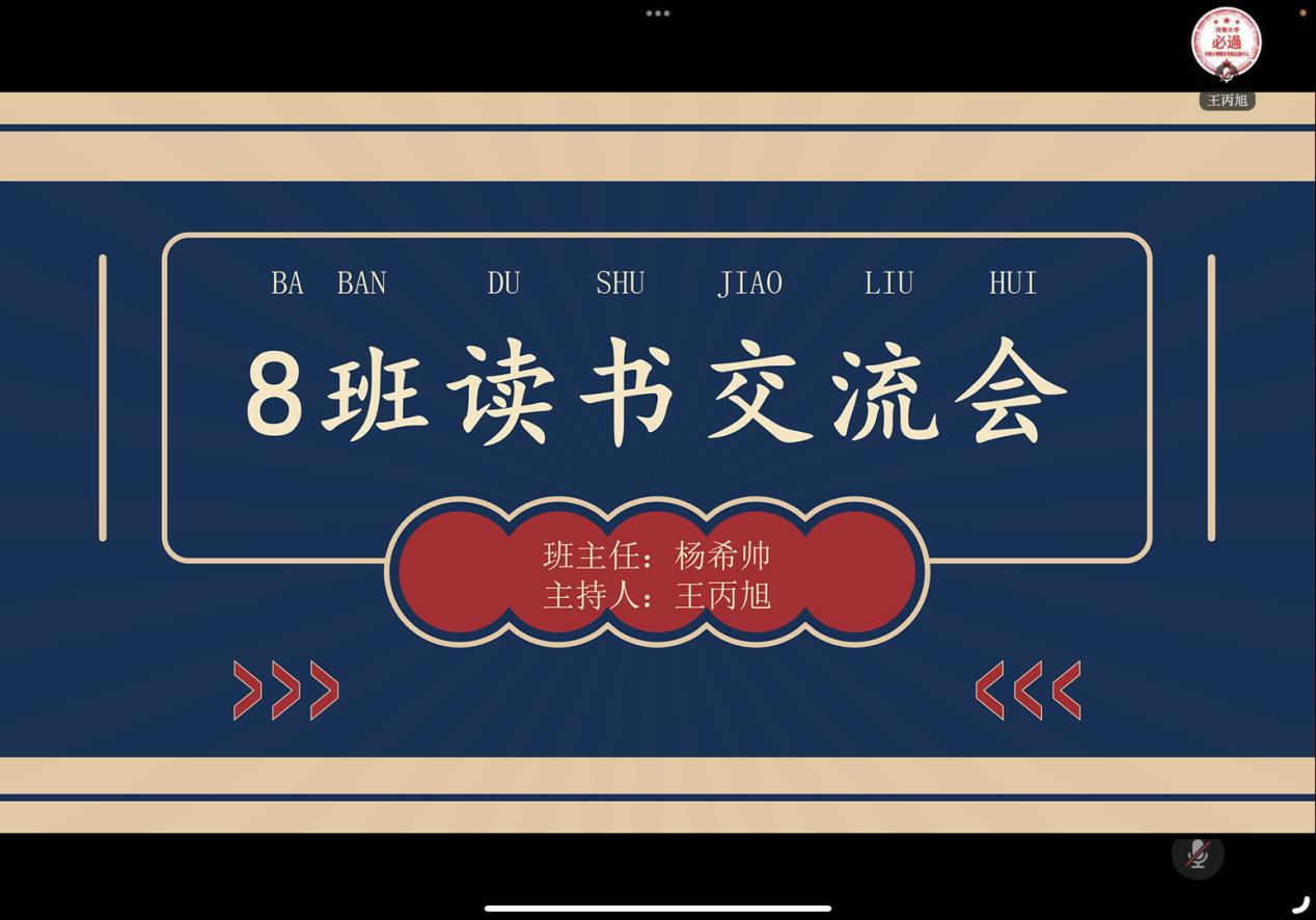 11月3日下午,太阳集团tyc59972021级本科8班于线上举办读书交流会。8班班主任杨希帅老师与全体同学线上参与,陈薇冰、姚冰、黄晓晶、王之羽、谢静瑶5位同学进行分享感悟。会议由王丙旭同学主持。