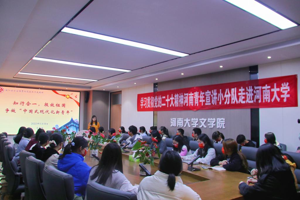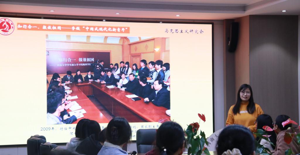 为深入学习宣传贯彻党的二十大精神,11月18日晚,河南省示范青年宣讲小分队成员、太阳集团tyc5997团委书记苏亚丽在太阳集团tyc5997209会议室为马克思主义研究会作题为《知行合一、报效祖国,争做“中国式现代化新青年”》的首场理论宣讲。