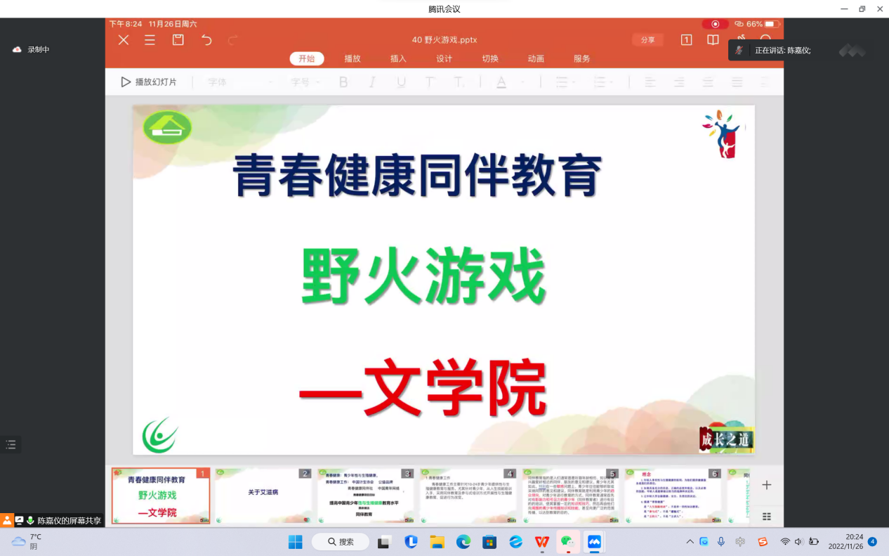 为提高学生预防艾滋病的意识和能力,推动青春健康工作的进行,近日,太阳集团tyc5997于线上开展“青春健康,同伴教育”的主题活动。太阳集团tyc59972020级各班代表积极参加,活动由2020级朋辈辅导员陈嘉仪主持。