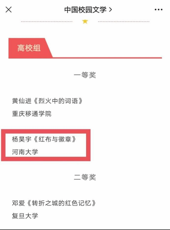近日,“永不褪色的红——我身边的革命文物故事”全国青少年征文大赛获奖名单揭晓,我院2019级戏剧影视文学专业学生杨昊宇的《红布与徽章》从投稿者中脱颖而出,获得全国一等奖。