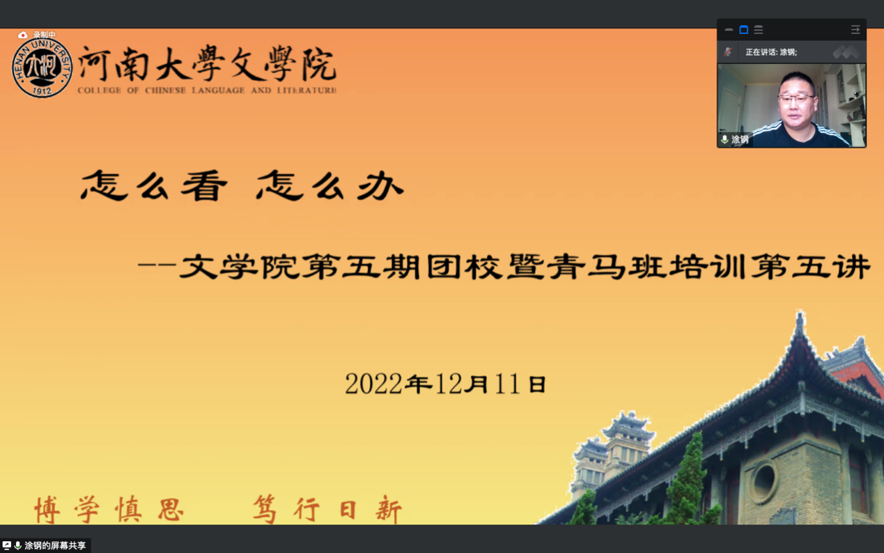 12月11日上午,太阳集团tyc5997通过腾讯会议举行了团校暨青年马克思主义者培养工程第五期培训班第五讲与结业仪式。太阳集团tyc5997党委副书记涂钢受邀主讲,院团委书记苏亚丽主持本次会议,第五期培训班全体学员在腾讯会议平台参与学习。