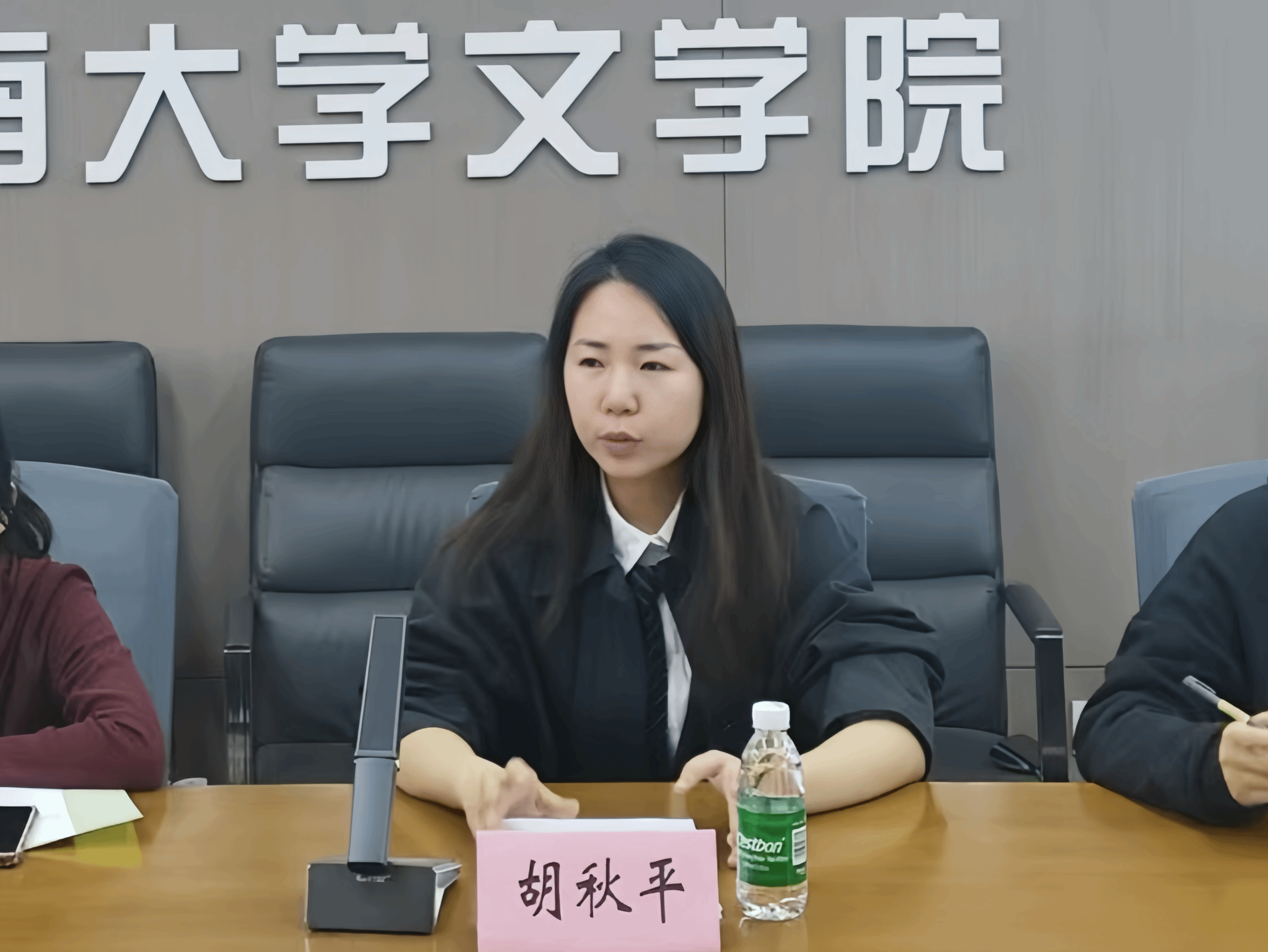 胡秋平围绕两会精神以及社团发展与参会成员进行深入探讨。胡秋平结合习近平总书记关于"守好马克思主义魂脉与中华传统文化根脉"的重要论述,系统回顾了马研会近年来在思想引领、实践育人、理论创新等方面取得的成效。她讲到,马研会不仅是理论学习的殿堂,更是同学们淬炼本领、展现才华的广阔舞台,她希望在座成员能够踊跃参与到各项活动中去,共同为社团的蓬勃发展贡献智慧与力量。在探讨两会精神的过程中,胡秋平结合自身工作经历与同学们分享理论学习经验,她鼓励同学们将两会精神融入到日常生活实践中去,真正做到理论联系实际,将两会精神内化于心,外化于行。